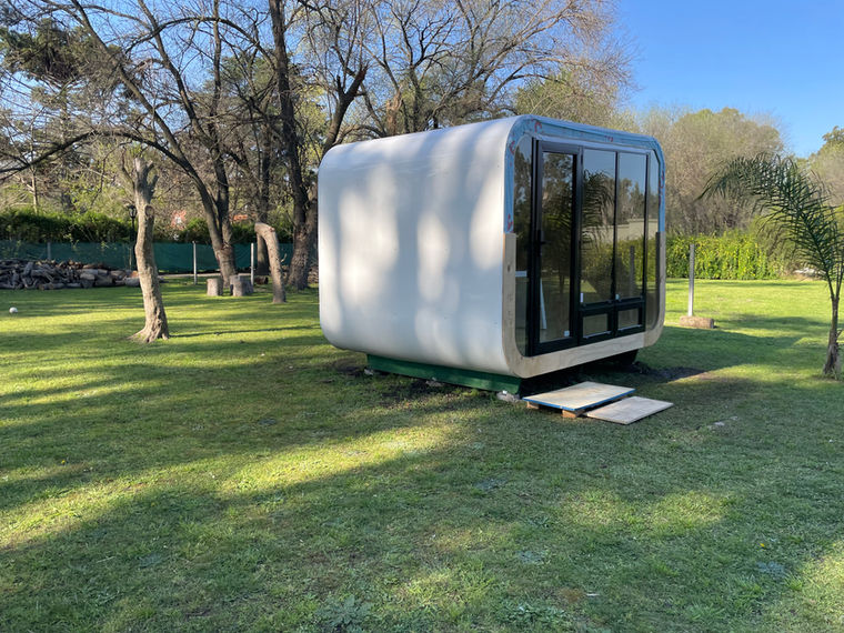 En el interior de nuestros módulos utilizamos revestimiento de fenolico sin nudos con hidrolaca para alto transito. El mobiliario esta laqueado con varias capas de poliuretano otorgandole cuerpo y resistencia . Las luces led controladas de forma manual o por aplicación desde  un celular resaltan todas estas características. En cuanto al exterior, la fibra de vidrio reforzada ( PRFV ) y la forma misma de los modulos sellan el conjunto brindandole un aspecto futurista de película.